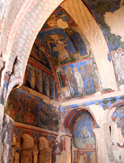 Next we visit Mustafapasa (Sinassos) which is one of the nicest villages in Cappadocia. In the last century it was the centre of Cappadocia and rich Greek businessmen from Istanbul built splendid mansions here. The whole village consists of such mansions, all of them built from square blocks of tufa. There are wonderful wall paintings and dainty relief works inside the mansions. The village was mostly inhabited by Greeks until the population exchange between Greece and Turkey in 1924. Mustafapasa also has churches from the 19th century.
